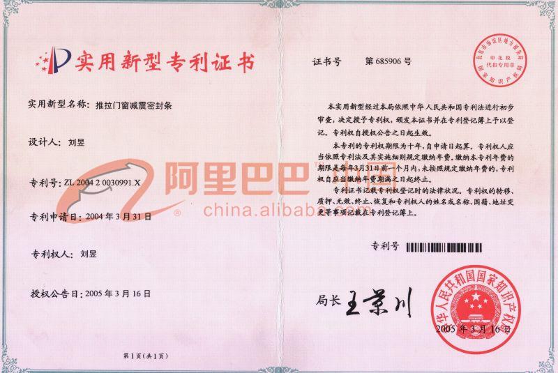 實(shí)用新型專利證書