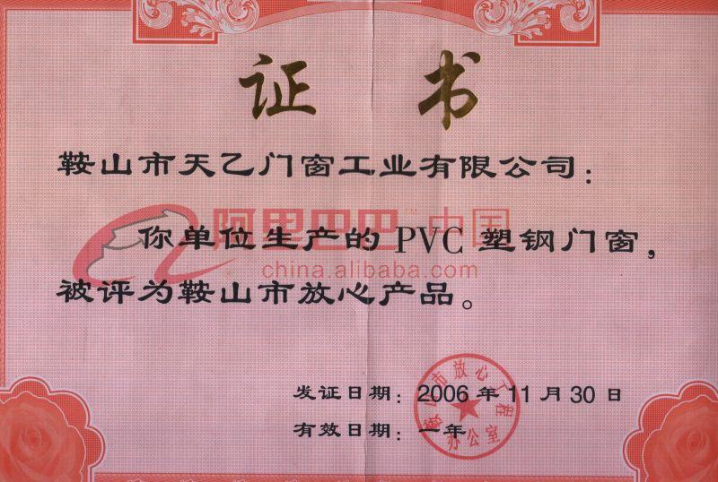 pvc鞍山放心產(chǎn)品證書